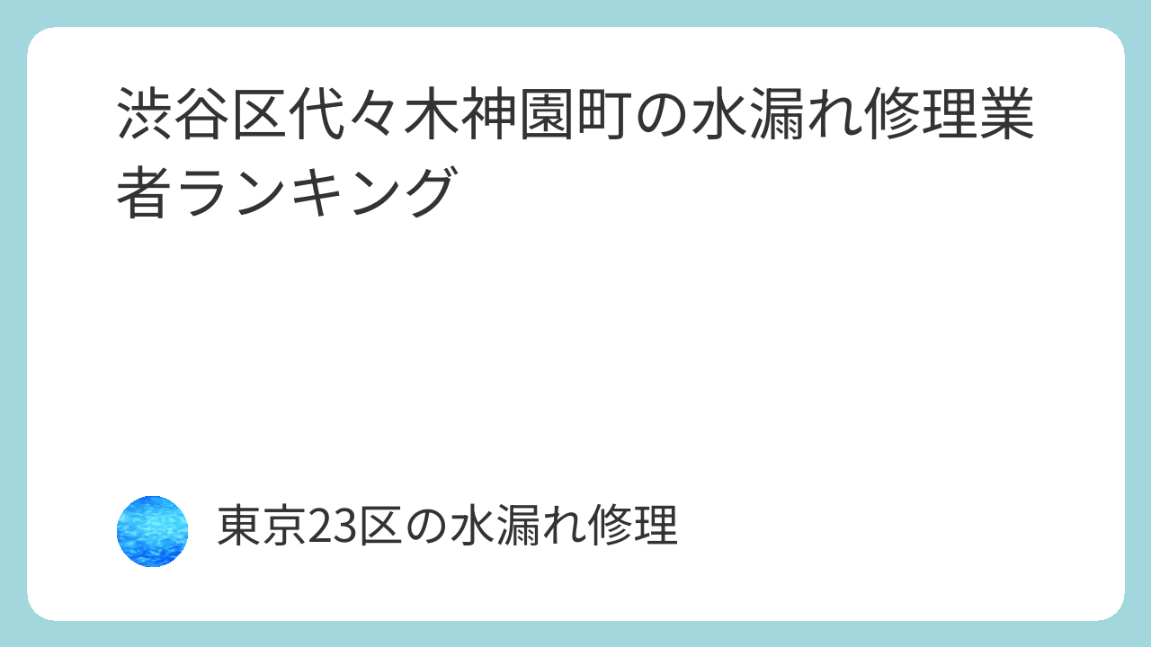 渋谷区代々木神園町の水漏れ修理業者おすすめランキング